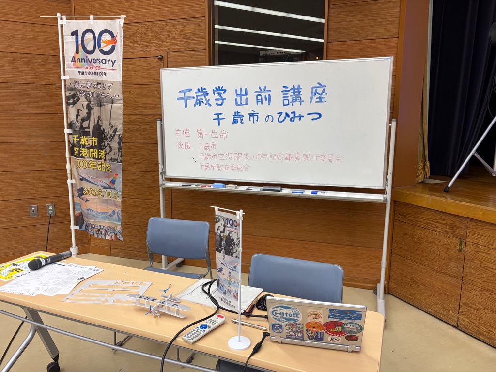 千歳市福祉センターで第一生命保険㈱千歳営業オフィス主催の親子向けイベント「親子で千歳のまちについて知ろう」が開催され、本イベントの中で出前講座を行いました。